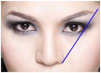 Alinhe agora entre a parte externa do nariz e a ponta externa dos olhos (não os cílios); isto vai lhe dizer onde a sobrancelha deve terminar. Marque com um lápis, repita para o outro olho.